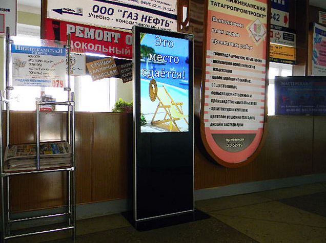 - Вы приобретаете медиастенд с подходящими вам характеристиками и нужных размеров, после чего вам следует договориться с арендодателями. Рекомендуемые места размещения видеостоек – торговые центры, оживленные улицы, кинотеатры, бизнес-центры и другие общественные места, где ежедневно бывает множество людей.